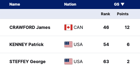 - Bib 42, Patrick Kenney, USA, Global Racing, University of New Hampshire, Burke Moutain Academy, Marker/Völkl, SYNC, SHRED