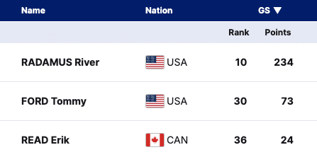 - Bib 58, Erik Read, CAN World Racing Academy, Banff Alpine Racers, University of Denver, Atomic