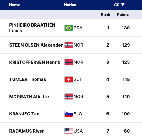 - Brazil makes history with Lucas Pinheiro Braathen leading the standings.