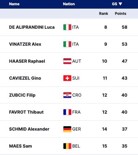 The current Giant Slalom standings highlight impressive performances from a variety of nations, demonstrating the sport’s global reach and competitiveness. Among the top 15 skiers: