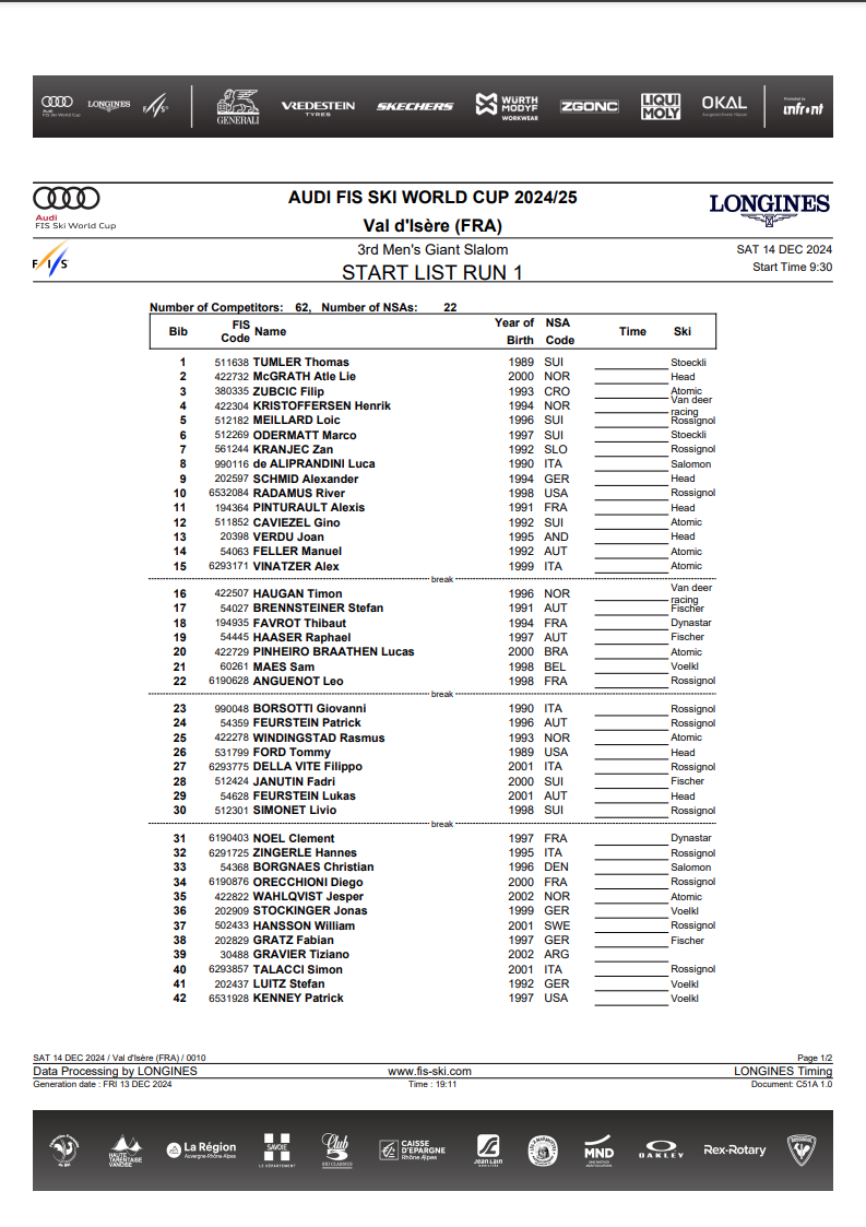 These results highlight the global competitiveness of this year’s field, setting up an exciting race in Val d’Isère on Dec. 14.