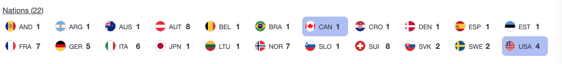 - Italy also contributes two skiers, reinforcing their consistent presence in the discipline.