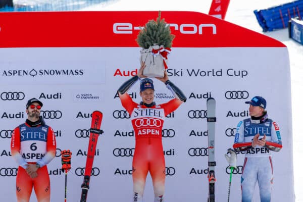His teammate Loic Meillard came alive in Stifel Aspen Winternational GSs and earned his second consecutive GS podium. After Odermatt skied his winning run, Meillard skied brilliantly and finished and maintained his advantage through all but the final split.