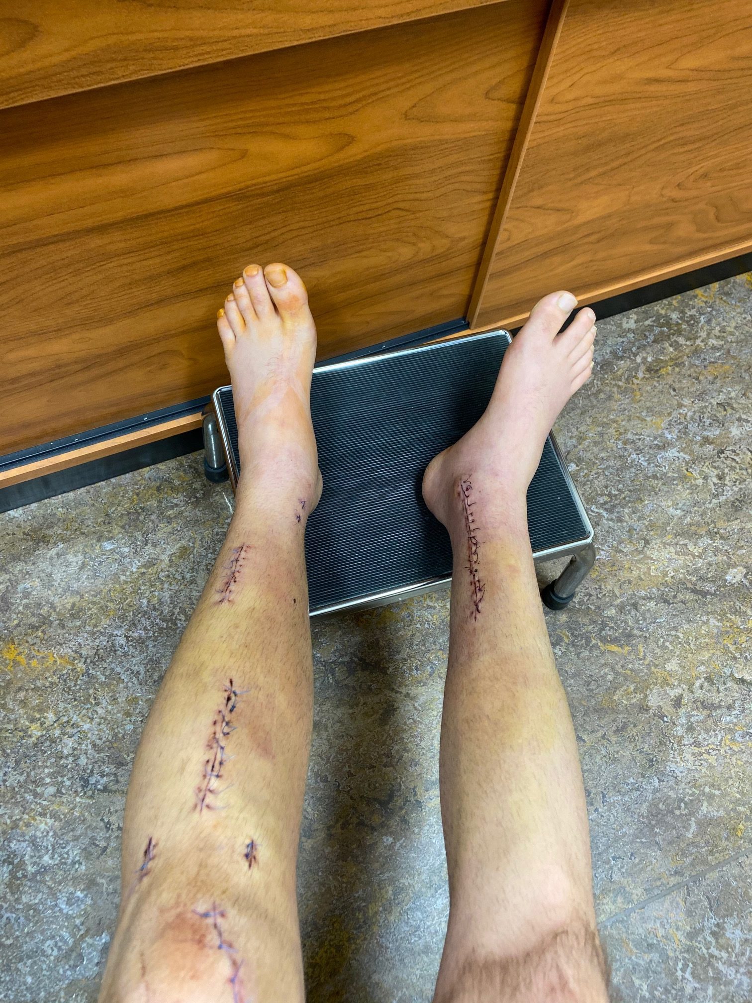 X-rays had already been scheduled before his final surgery to remove a majority of the hardware in both legs. That’s when doctors found the nonunion in his right leg. Essentially, his right leg was no longer healing due to the large amount of metal placed in his first surgery. His surgeons stuck to their plan to remove the hardware, and would add a new rod to stabilize and heal the right leg.