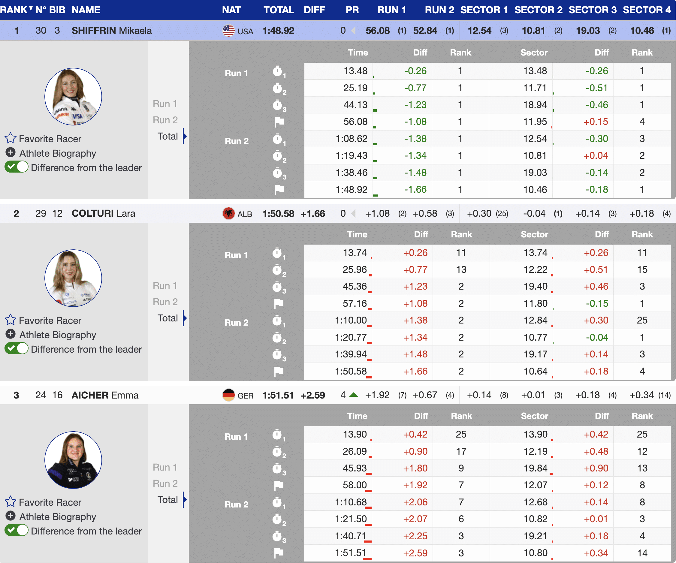 “I’m really excited about what I did today, especially because I wasn’t expecting it — and it’s my birthday. I felt good in training, but not like this. To be on the podium with Mikaela means a lot. She has inspired me since I was a little girl, and sharing a podium with her today is really special. We’re the new generation coming up, and athletes like Mikaela have shown us the way. Now I get to celebrate with my team, my family, and my friends, so it couldn’t be a better birthday.”Lara Colturi, Albania
