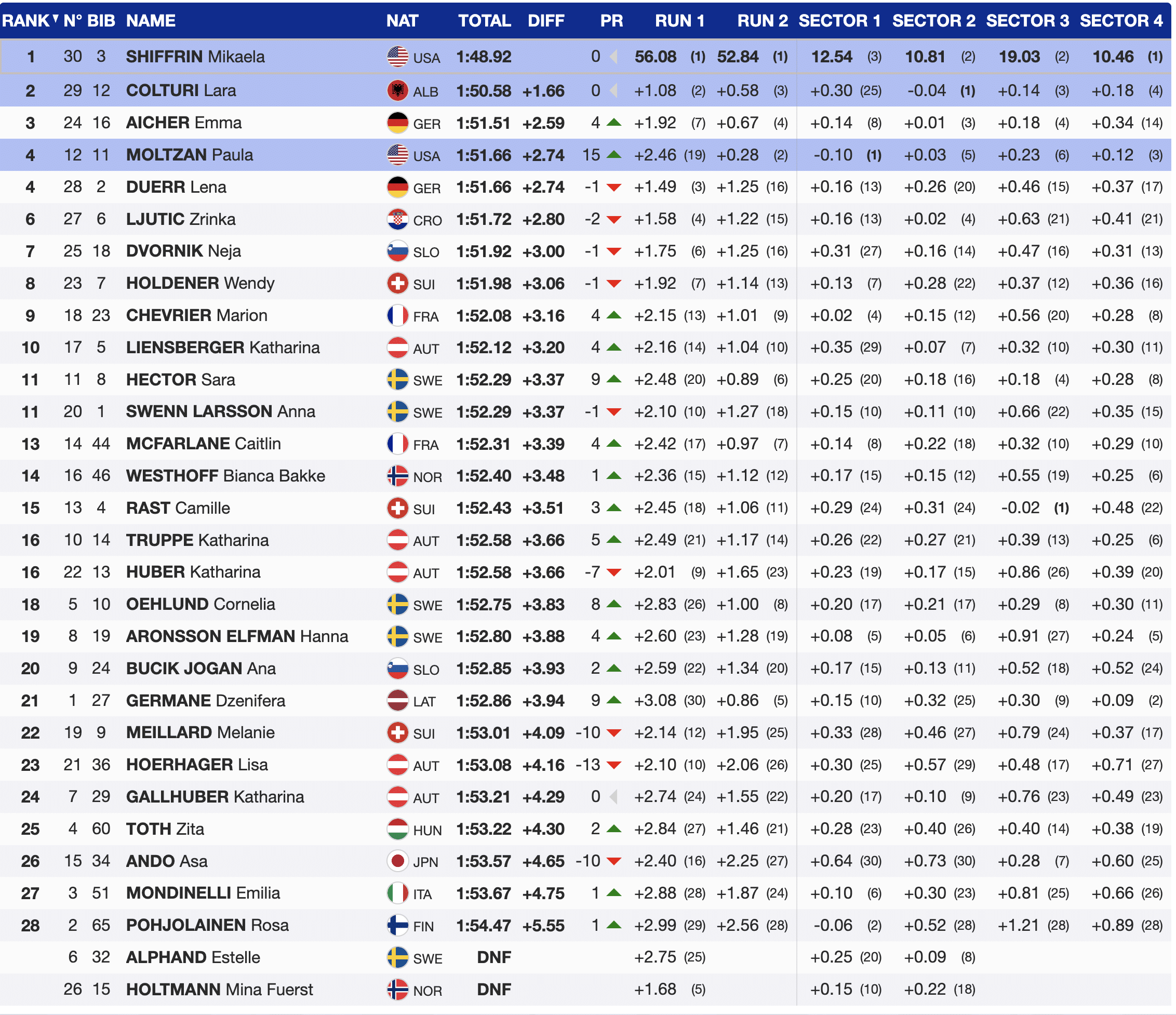 Official Results – Levi Women’s Slalom