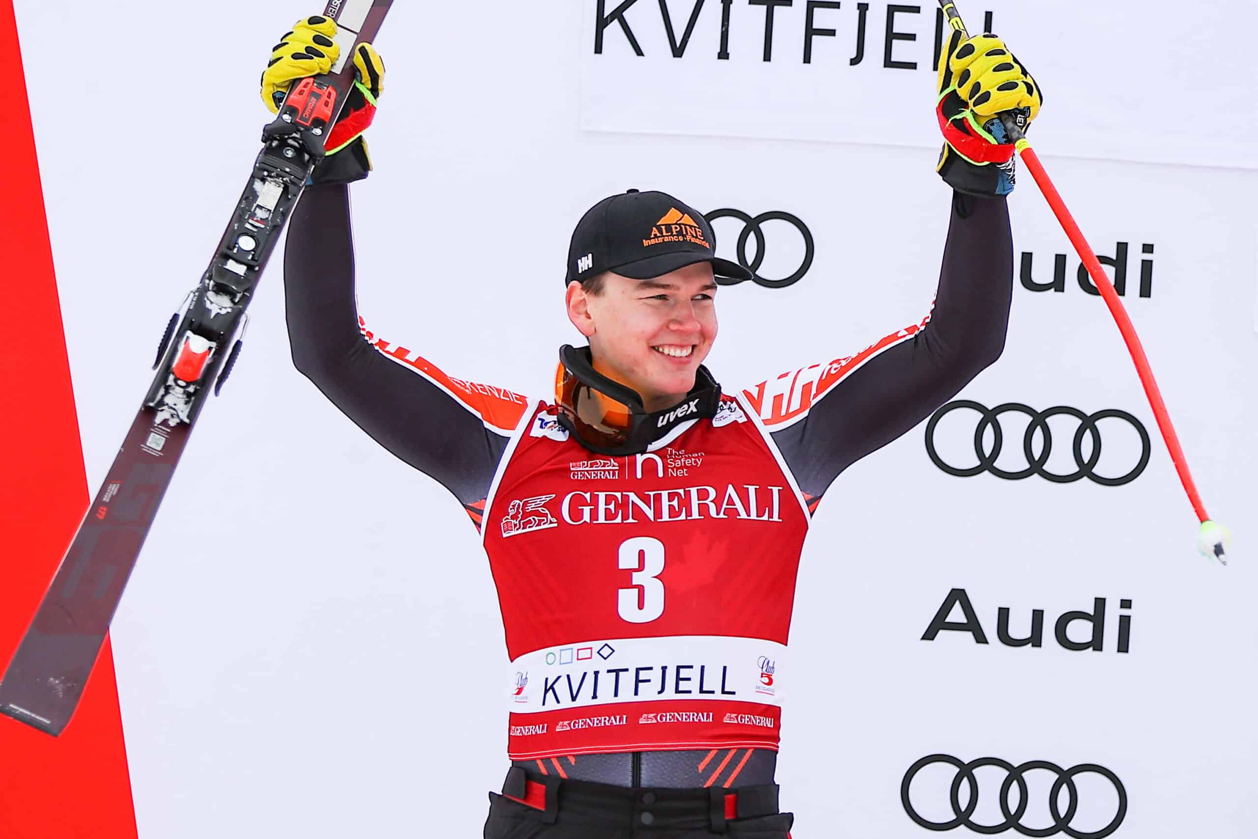 He stated, “It was a short super-G, of course. But, the feeling on the course was smooth, not that bumpy and no ice. I skied pretty perfectly, but the left turn of the first split was not amazing, but also good enough for a win today,” He continued, “I wanted to just have fun and try to push.”