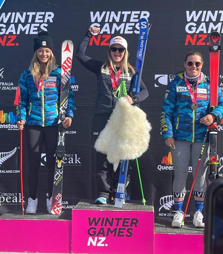 The second women’s ANC Super-G contested that day saw the first US Super-G podium in the series. Although Canadian Crawford won again with another strong performance, USST athlete Ava Sunshine Jemison was second, finishing in front of World Cup star and local legend 3rd place Alice Robinson. This marked the first podium for Robinson since her switch from Völkl to Salomon skis. However, the 2nd place finish for Jemison, sandwiched between two veteran World Cup skiers and Olympians, had to bring confidence. Two other North Americans, Canadian Schoenherr 5th and US Ordway 9th finished with strong top ten results.