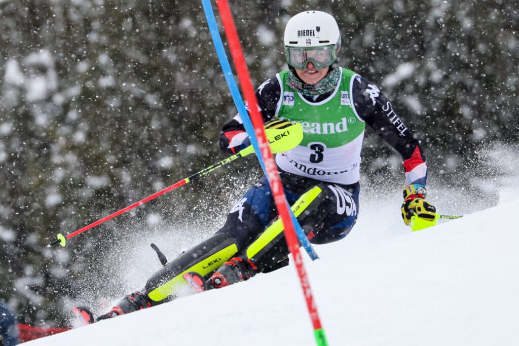 The first North American to ski the final course was Stifel US Ski Team’s AJ Hurt. She earned the third step on Saturday’s GS podium and achieved a slalom podium in Kranjska Gora, Slovenia, earlier this season. True to form, Hurt was attacking and delivering a fast second run when she exceeded her limit and straddled in the final sector while skiing with the lead. She has one more opportunity to qualify for the slalom at the Saalbach finals.