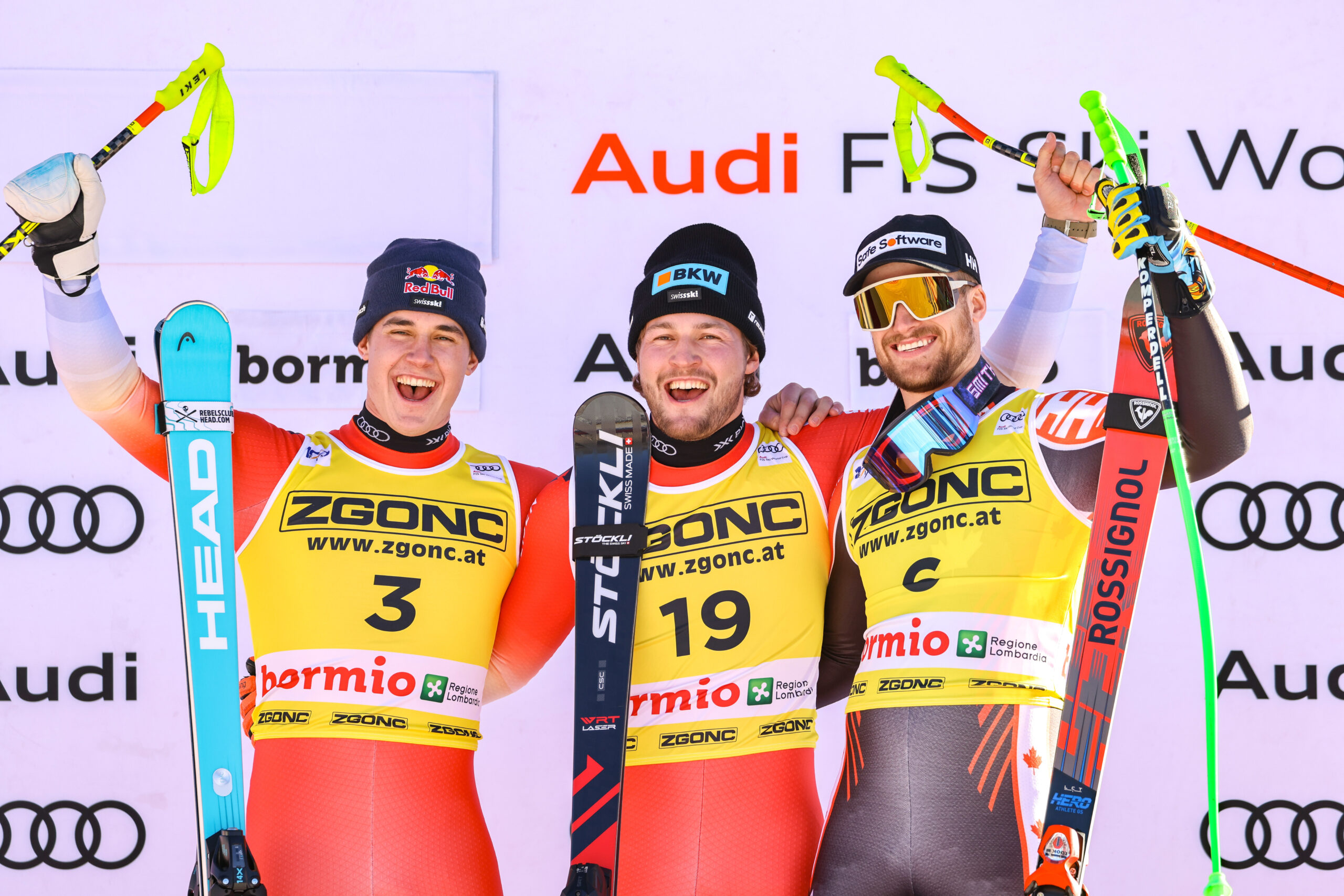 Another young Swiss athlete, Franjo Von Allmen, was third in the downhill World Cup standings coming into Bormio. He kicked out of the start wearing bib-3, and with his solid performance, he was able to hold off the entire top-15 field of racers.