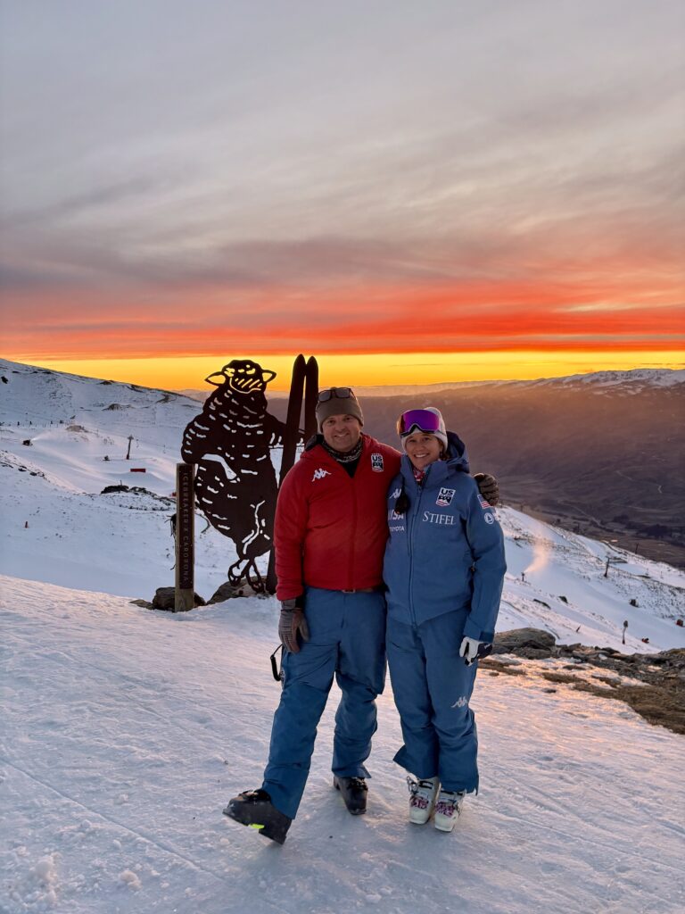 That level of preparation goes far beyond what most people see. Childcare must be arranged months in advance. Babysitters are found in Mammoth, in New Zealand, and everywhere in between. Days are scheduled down to the hour so that when she is on the hill, she can give athletes her full attention.