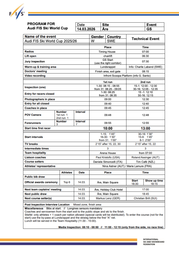 Scheib enters Åre firmly in the driver’s seat for the crystal globe, and it would likely take a collapse combined with strong results from Hector or Rast to overtake Scheib for the title in the final races.