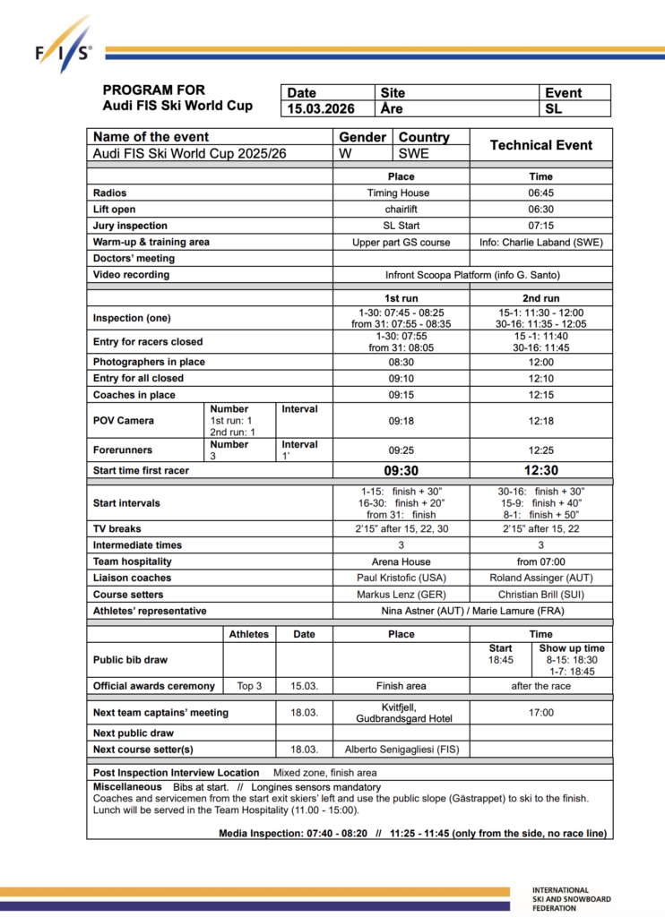 The FIS Ski World Cup heads to Åre, Sweden, for the ninth women’s slalom of the 2025–26 season, the final women’s race before the World Cup Finals.