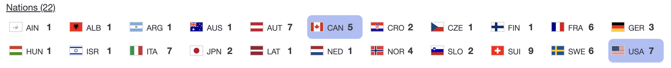 Across the eight World Cup races there have been 10 podium athletes representing six countries, but the win column shows a clear story — this has been the most dominant discipline performance of the 2026 World Cup season.