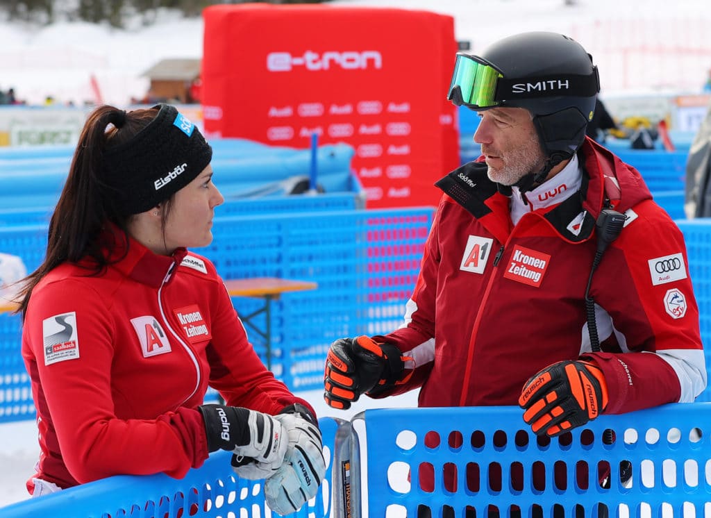 He thinks the recipe is to continue training hard and to add one spice: Skiing with a higher risk. “They are not able to risk enough at the races because they are afraid to make mistakes, to be slow and so on. So, they are holding back quite a lot.” He points to Franziska Gritsch as a positive example of what is possible. She won the second run in slalom twice so far this season. Teammate Katharina Truppe placed third in the Killington World Cup slalom in November. The qualities needed for good results are there.