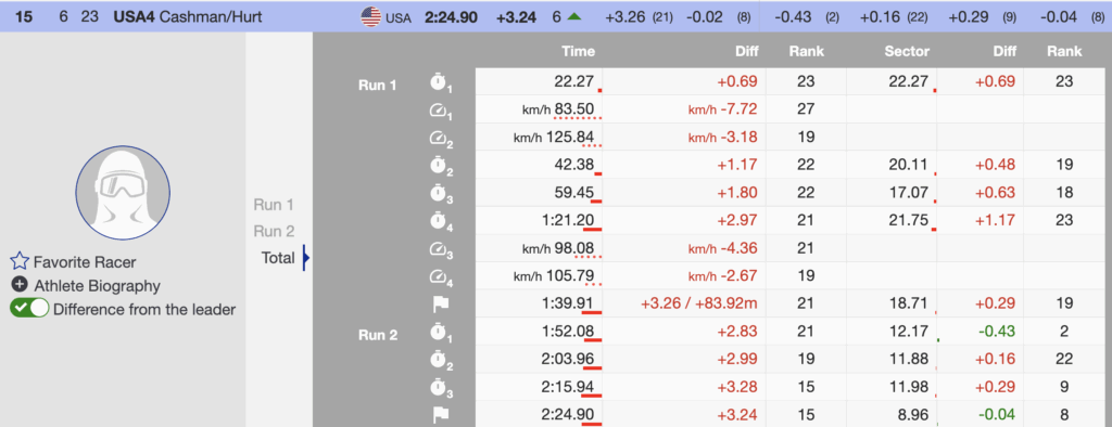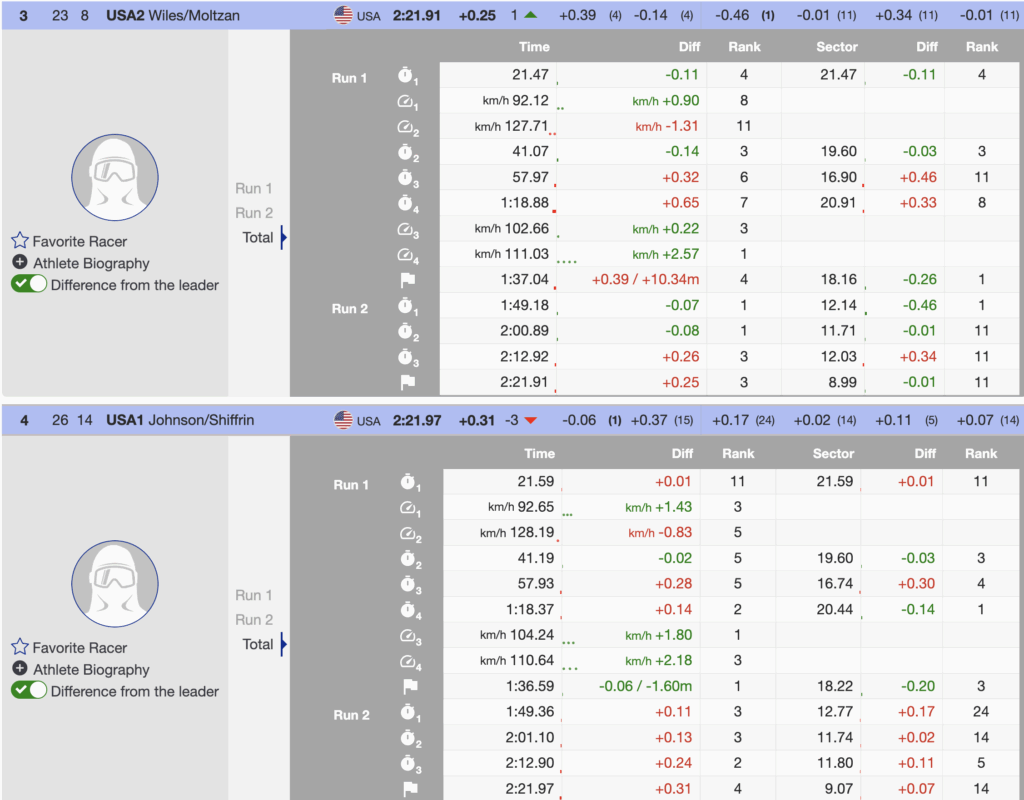 - 4th 🇺🇸 USA1 — Breezy Johnson (1996) / Mikaela Shiffrin (1995) — +0.31