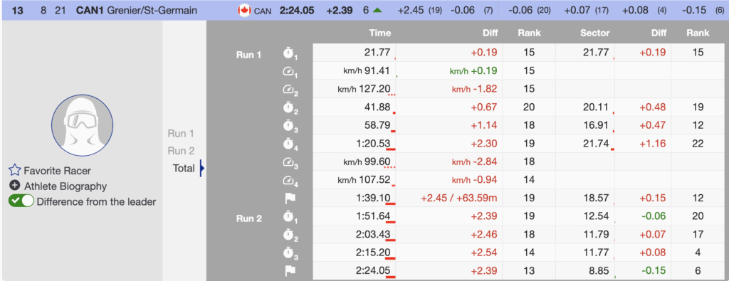 - CAN1 — Valerie Grenier (1996) / Laurence St-Germain (1994) — 13th