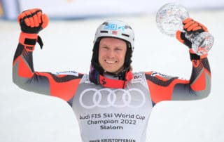Henrik Kristoffersen clinched the men’s slalom title in the last event of the World Cup ski season, placing second in a race dominated by Norway.