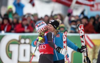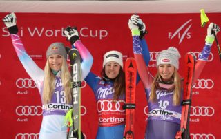 Lindsey Vonn, Sofia Goggia, and Mikaela Shiffrin share the Cortina d'Ampezzo podium: Photo Credit GEPA