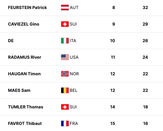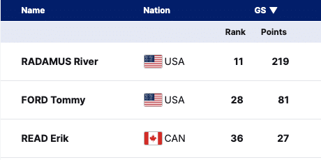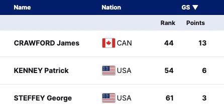 Patrick Kenney, an independent racer with the Global Racing Team, will also compete. Ranked 54th on the WCSL, Kenney scored World Cup points last season, standing out among his peers. A former University of New Hampshire skier, he brings a blend of collegiate and World Cup experience but will need a strong performance to move up the rankings.