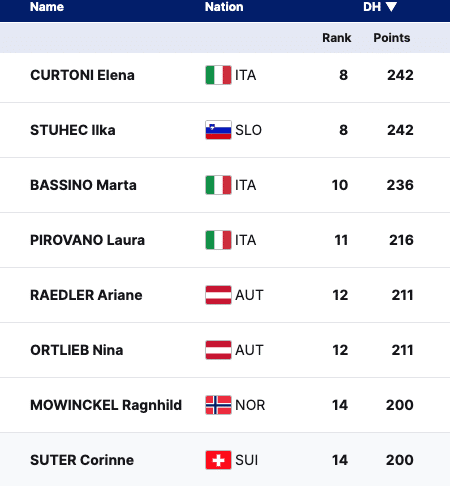 Looking ahead, Shiffrin will not compete in Beaver Creek, but Goggia is back and chasing her fifth downhill season title. Last year, Cornelia Huetter (AUT) claimed the title after clinching victory at the World Cup Finals in Austria, edging out Lara Gut-Behrami (SUI). Gut-Behrami’s failure to score in the final race sealed Huetter’s triumph, adding drama to an already thrilling season.