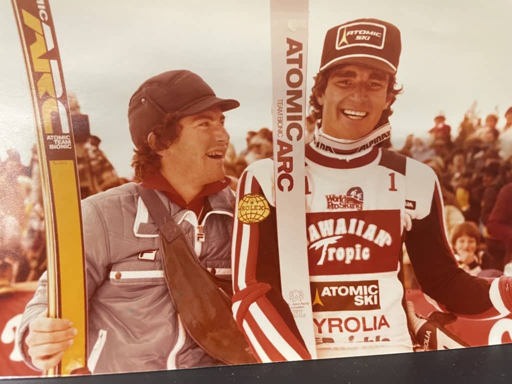 Lewis describes himself as a wanna-be-skier. He says, “Back in the ’70s, I had a part-time job with Atomic making pro sales at Squaw Valley and Alpine. Because of that job, I was in a position in 1977 to hear Atomic was looking for someone to assist their pro racing team. They were looking for someone to transport their equipment from race to race. Langwallner was in charge of the program. I got the job, and it changed the direction of my life.”