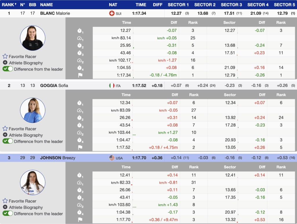 - 3rd 🇺🇸 Breezy Johnson (USA) — bib 29 — +0.36 — 1995 — Atomic