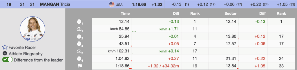 - 19th 🇺🇸 Tricia Mangan (USA) — bib 21 — +1.32 — 1997 — Head