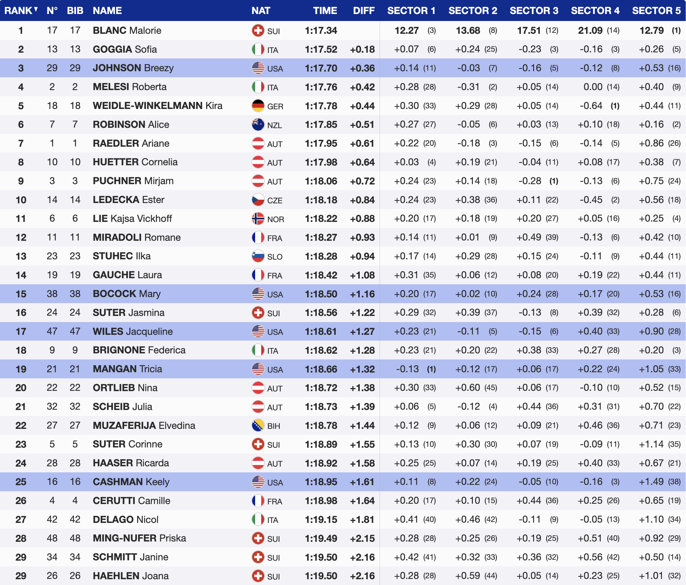 - 27th 🇮🇹 Nicol Delago (ITA) — bib 42 — +1.81 — 1996 — Atomic