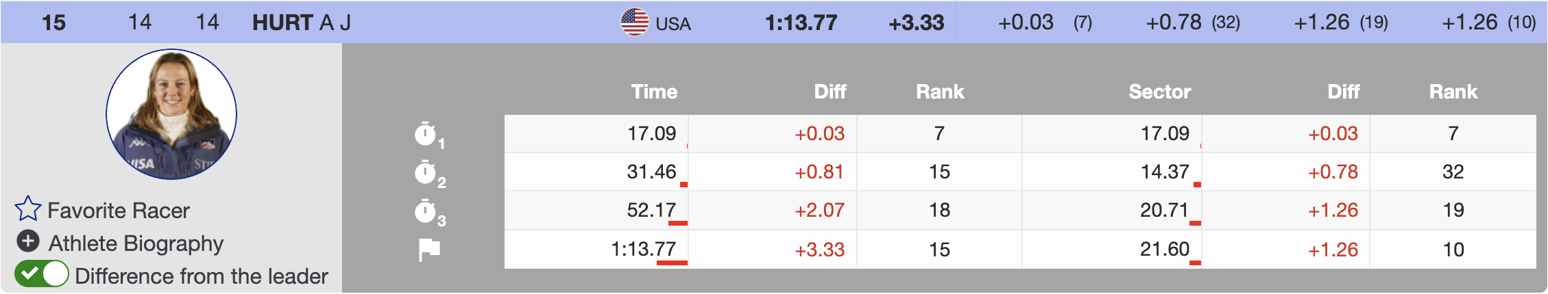First-run analysis of the fastest three and other North Americans in the top 30