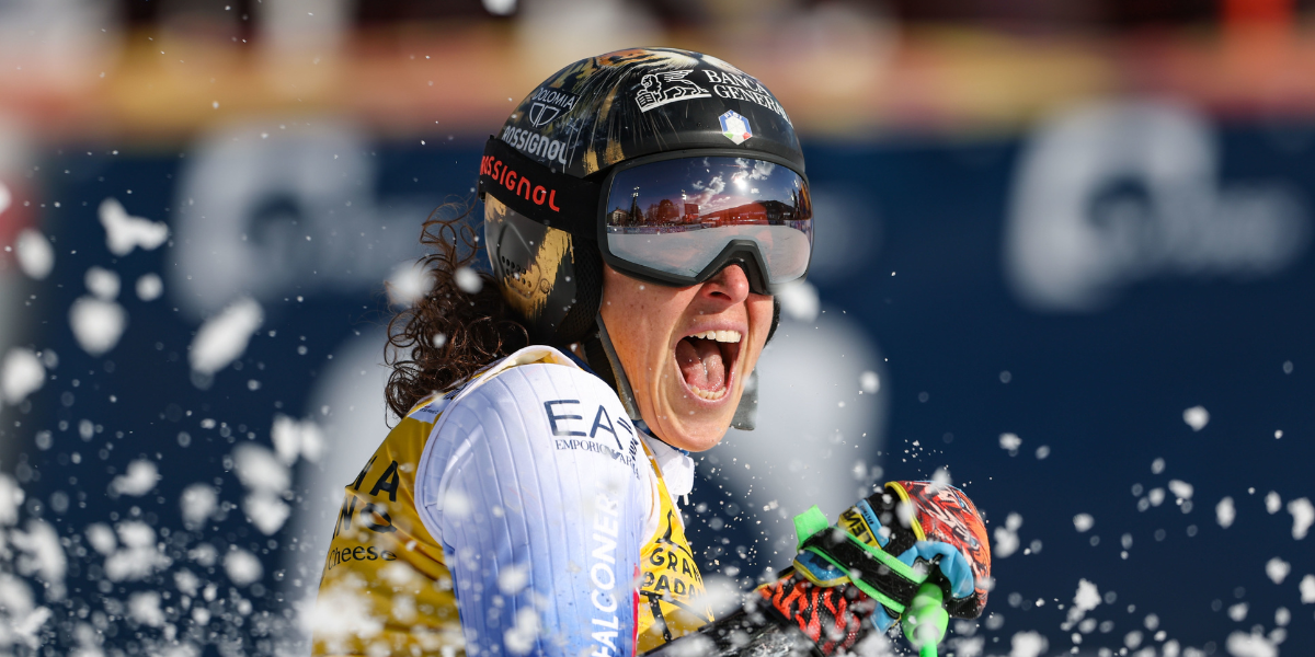 Only one skier remained—Federica Brignone, the four-time giant slalom winner this season and World Champion. She attacked from start to finish, showing why she is the most dominant giant slalom skier of the year.