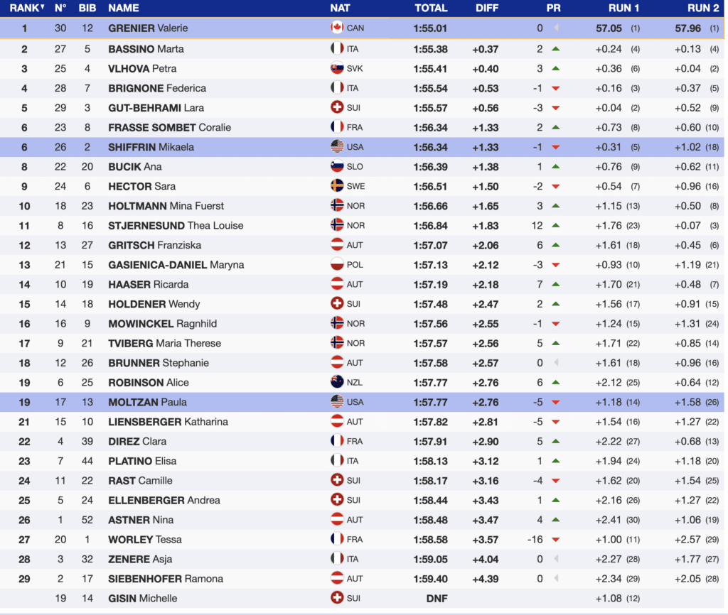 “It feels amazing! I’ve wanted this day for so long; it’s a dream come true,” said a beaming Grenier. “I’m proud that I was able to keep it together for the second run and to find a way to win after winning the first run. I thought that there would be a lot of pressure, but I felt really calm and confident. I’m so happy to have our team here. It was so fun to see them at the finish and to celebrate with them.