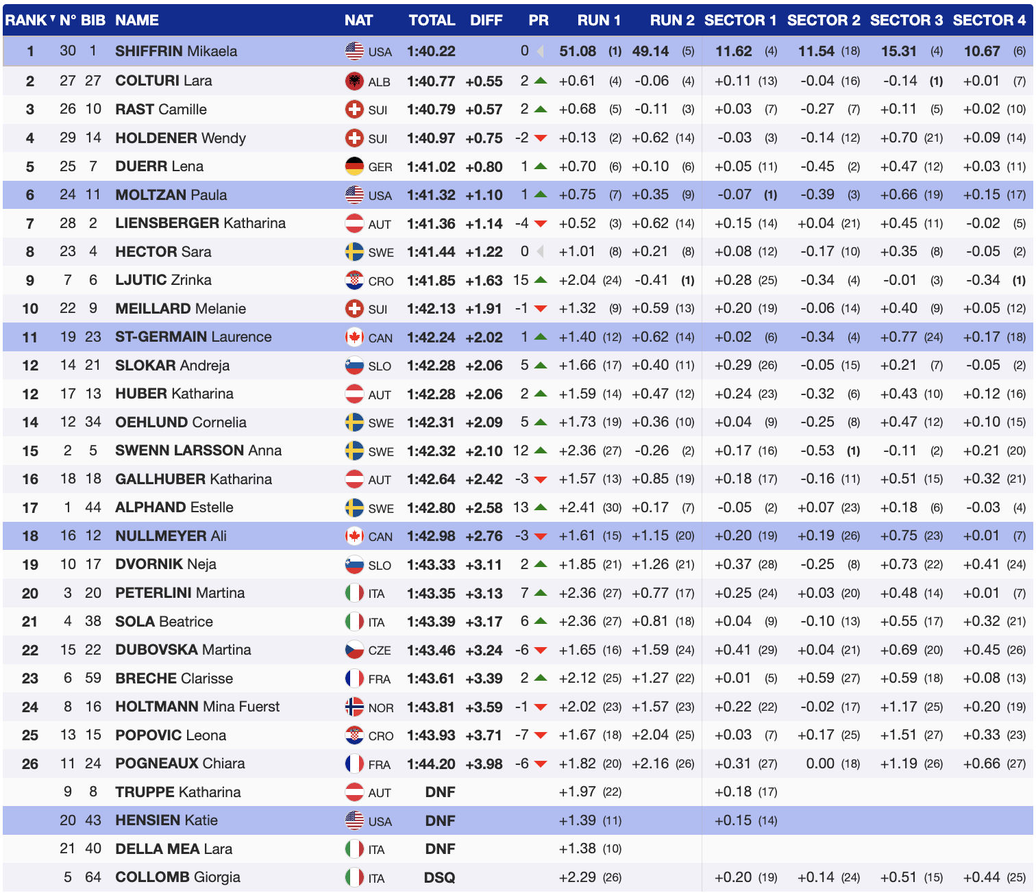 Ljutic held off 15 athletes before Sarah Hector of Sweden came through the finish, bumping her out of the leader’s chair. She achieved 8th place.