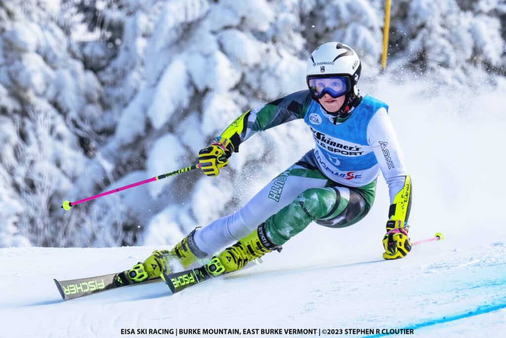 Current World Cup racers inspire with their performances and also offer direct counsel and support. Last spring, when Cooper Puckett struggled with his pull towards racing for both Dartmouth College and the US Ski Team, he went to AJ Ginnis for advice. “It was a pretty scary decision to make. AJ was totally my Yoda,” recalls Puckett. “He helped me completely visualize it and map it out. I’m so grateful for him, and to see the architect of my plan this year be the best in the world is the most inspiring thing ever.” Puckett, who competed in his third World Junior Championships in February, earned a spot on Dartmouth’s 2023 NCAA Championship team and scored a personal best GS result at Burke. Stifel US Alpine Team member Allie Resnick also added college racing to her syllabus and will compete for Dartmouth at the NCAA champs.