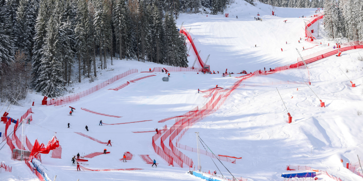 Featured Image: B-net fencing is dismantled on the Courchevel World Cup course after both super-G races were cancelled due to unsafe conditions. (GEPA Pictures)