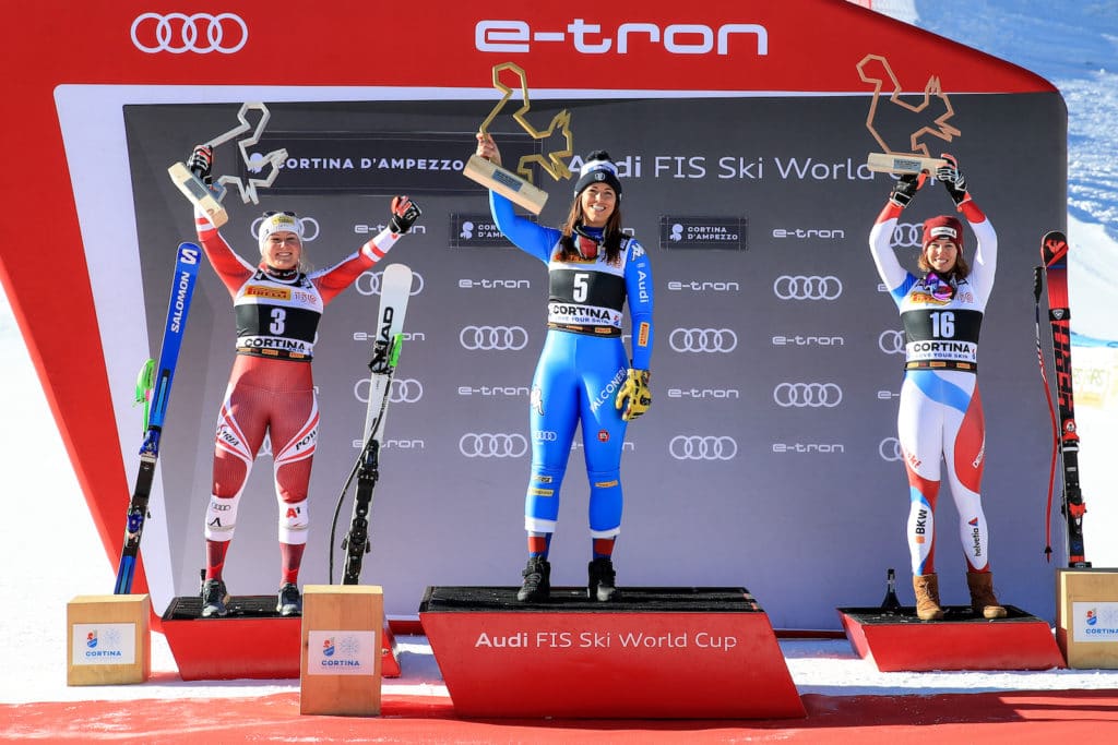 Italy dominates the super-G standings, which are led by Brignone (377 points) – who finished fourth Sunday – Curtoni (348) and Goggia (332).