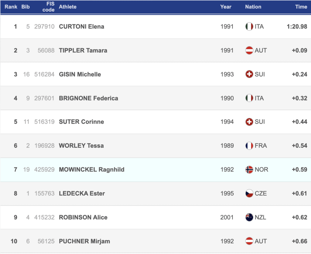 Curtoni’s previous victory came in a downhill in Bansko, Bulgaria, two years ago. She has been strong all season and this marked her third podium result in six super-Gs.