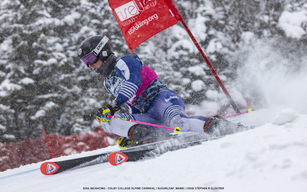 Other notable results this weekend included Williams College senior Eliza Sullivan, who scored her first collegiate podium to kick off her senior season, and the Boston College men’s team who finished third in both days of racing. Bode Flanagan and Nick Kirwood both finished in the top 10 in both events and Colin Hanna grabbed tenth in the GS. Duncan Armstrong from Harvard just barely missed his first podium but scored fourth in Saturday’s GS.