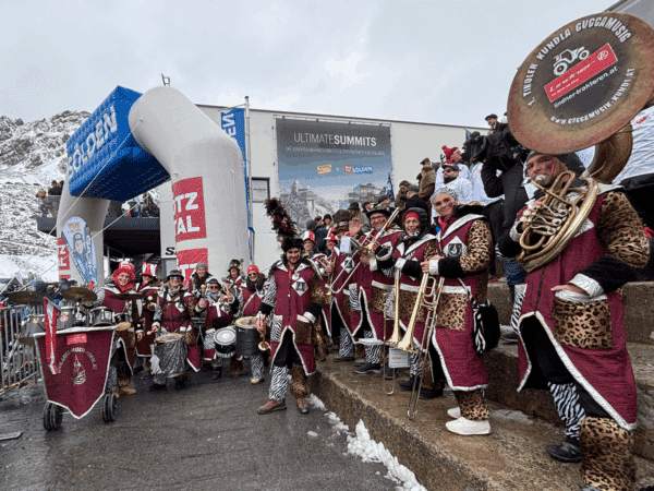 Visitors can’t miss the marching band in colorful costumes performing at the fan club grandstand on Saturday. The Guggamusik Kundl group comes to Sölden every year to get the crowd dancing, fill the air with positive energy, and have a great time.