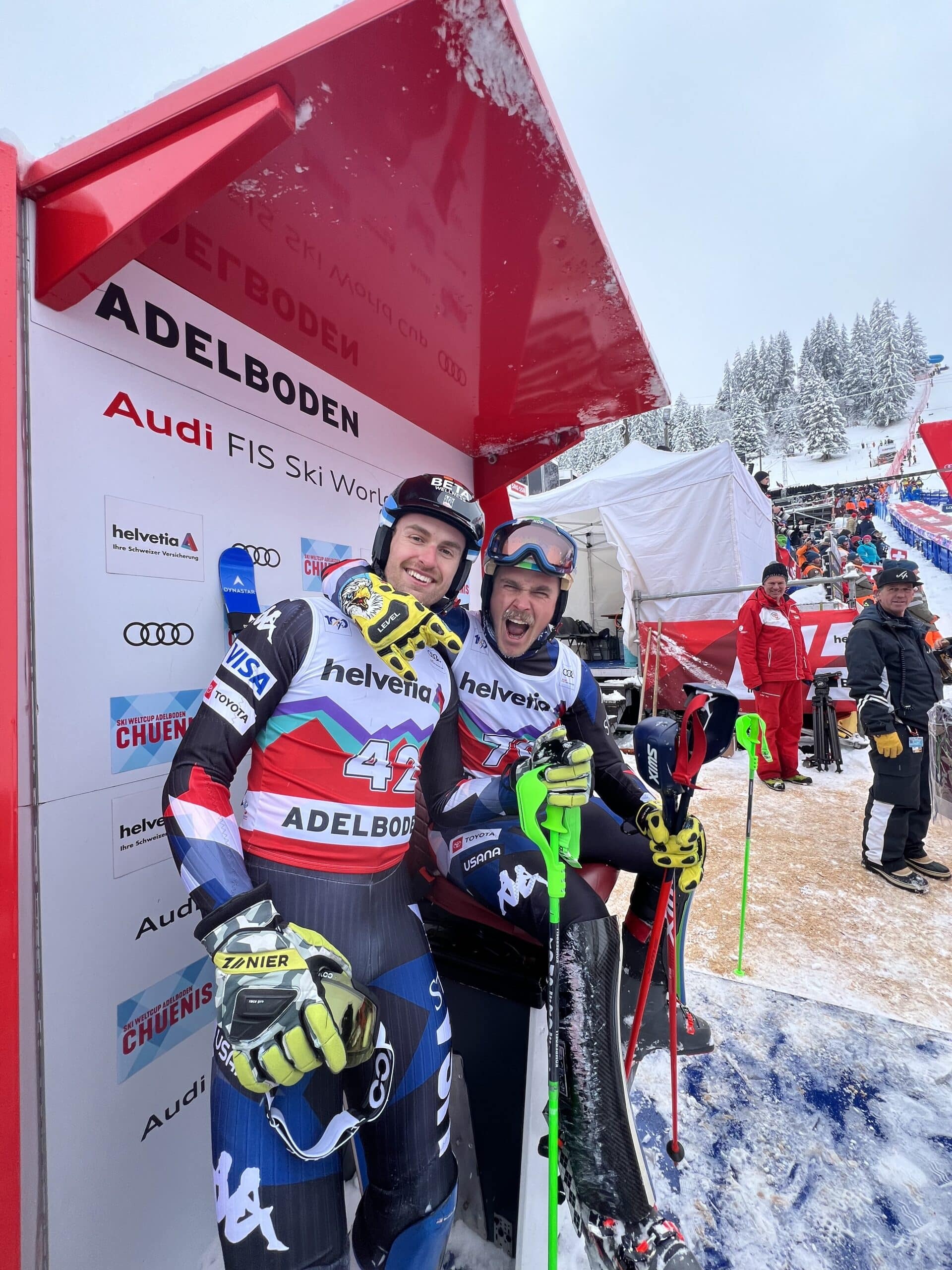At the end of the race, Radamus had moved up ten spots and finished 19th (+2.15). Erik Read moved up four positions, finishing 20th (+2.19), and Ritchie moved up seven places and finished 23rd (+2.65). Adelboden marks the best day of men’s North American World Cup slalom this season.