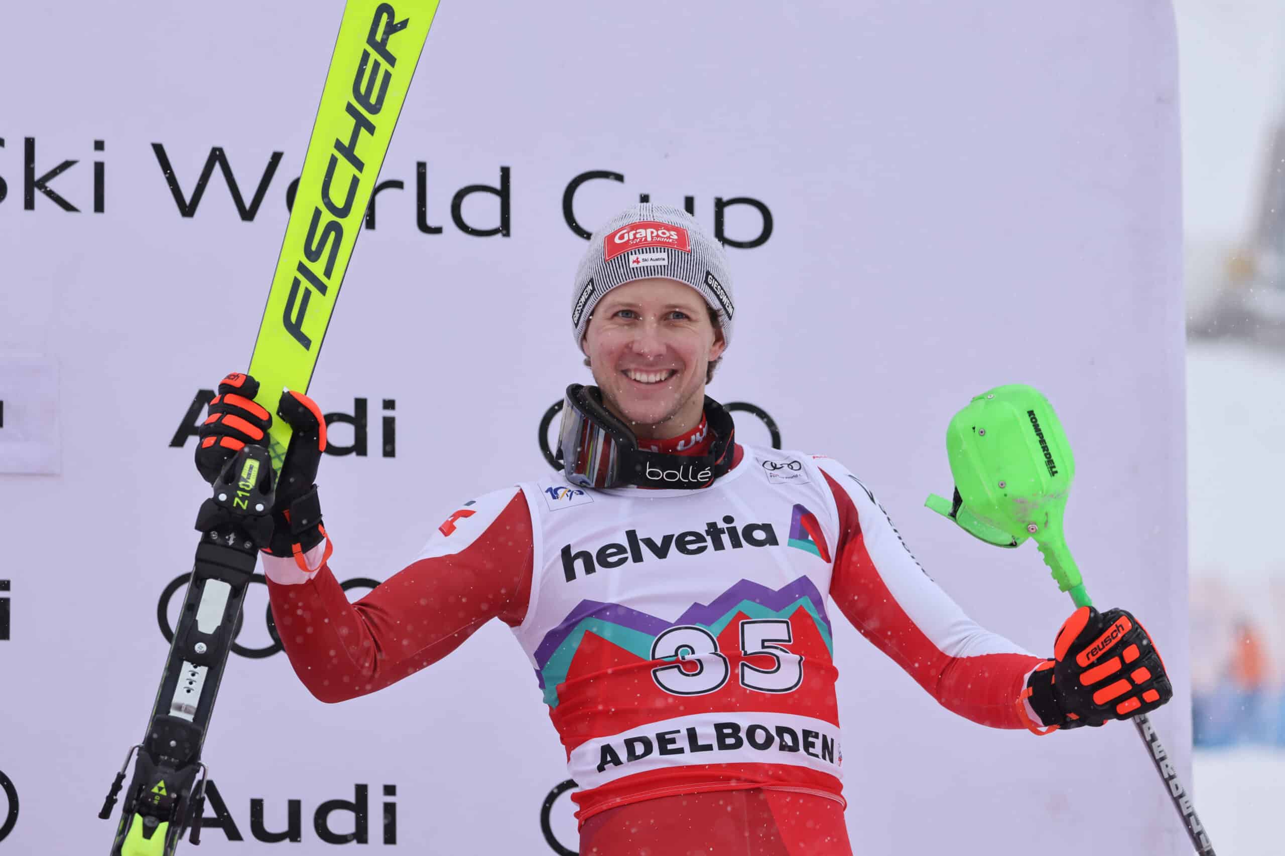 The Adelboden win represents his fourth career World Cup slalom victory. He is once again the leader of the season’s slalom standings.