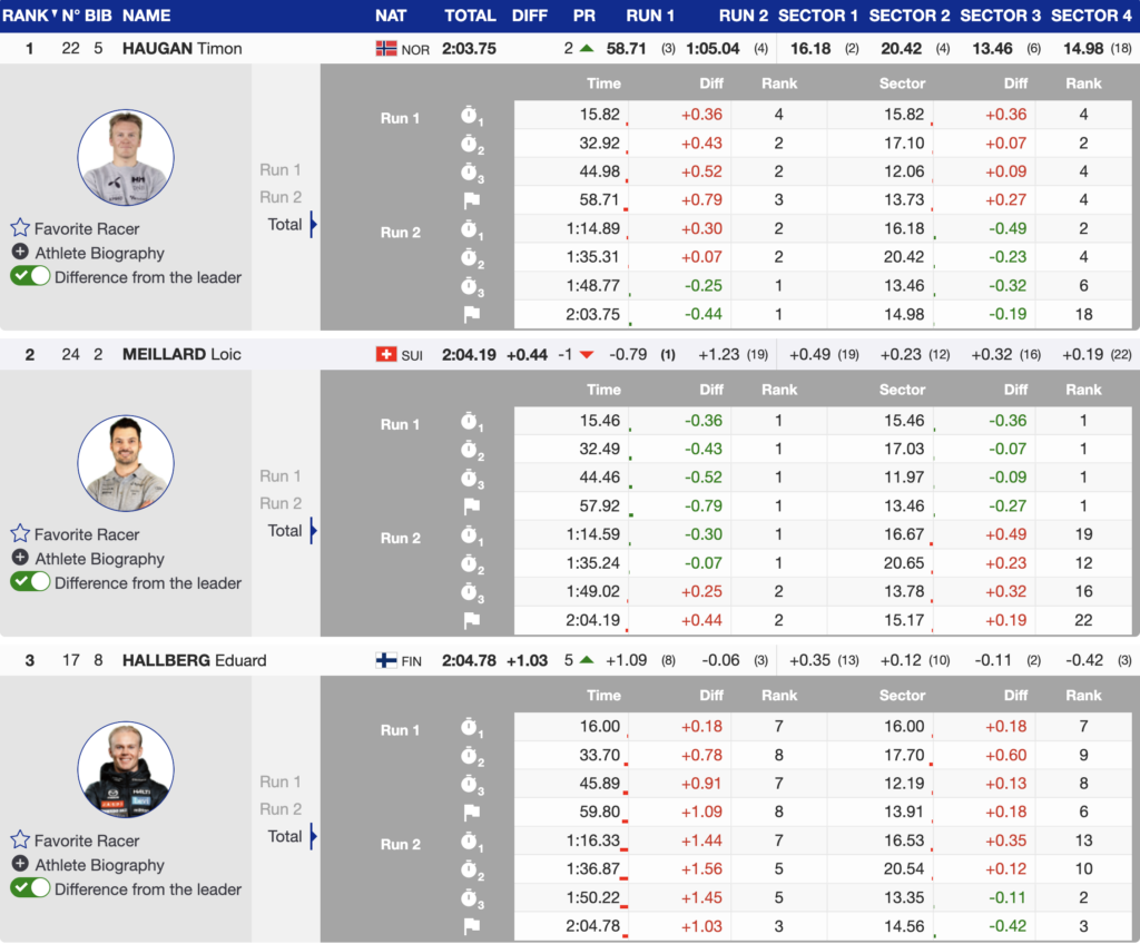 The 29-year-old Norwegian attacked from the start with strength and confidence, building speed through the middle of the course and staying aggressive all the way to the finish. His total time of 2:03.75 proved untouchable.