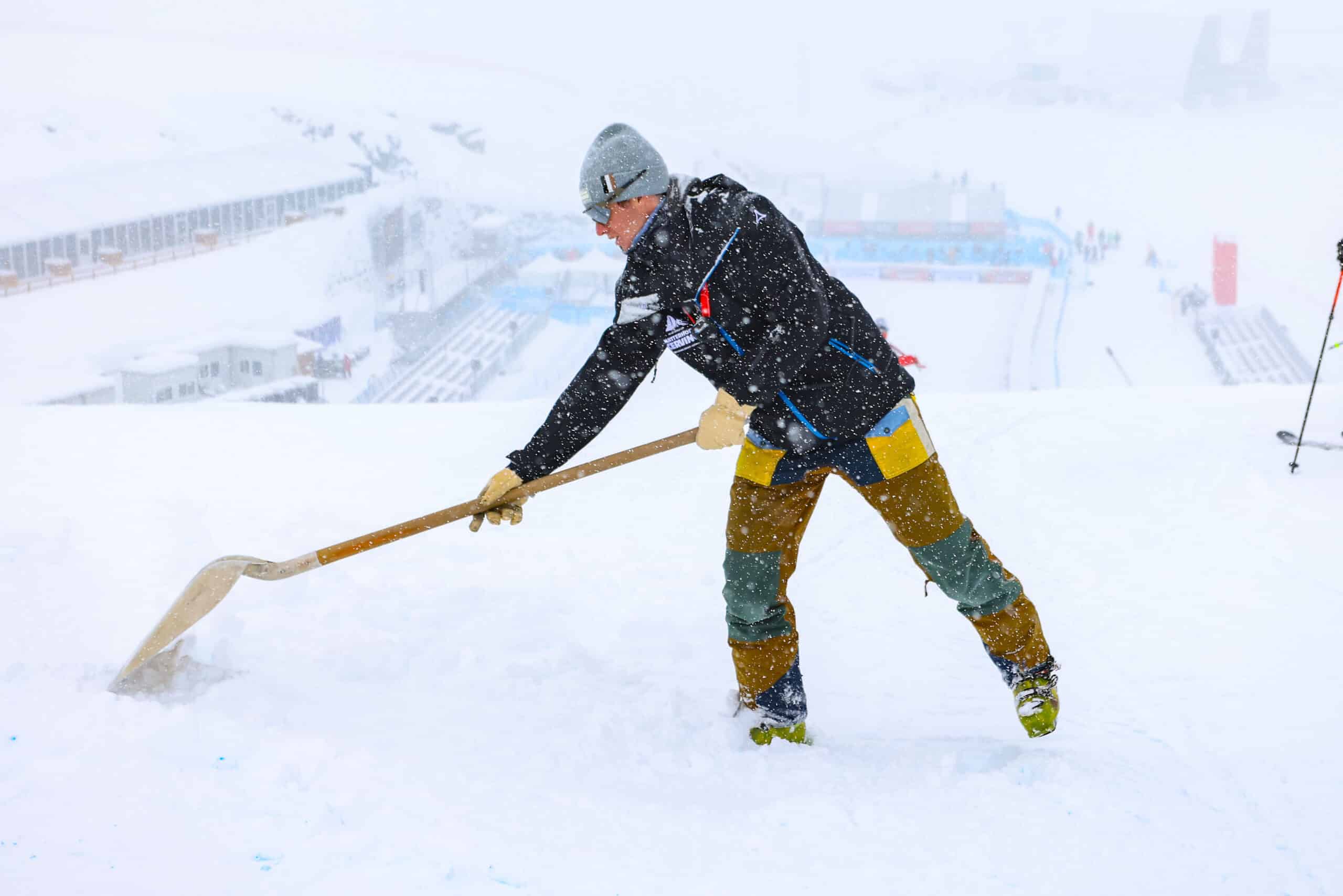 Tomorrow, the World Cup Men will give the Zermatt-Cervinia, Gran Becca track another try. Everyone is hoping that the weather holds out for the much-anticipated downhill. After the race got canceled today due to safety concerns from heavy snowfall and severe wind drifts, Chief of Race Markus Waldner said in a FIS interview, “Early this morning, at 5 a.m., we had enormous snow accumulation on the race track from wind, so there was a lot of snow in different sections of the track. There was no chance to be ready on the race track.”