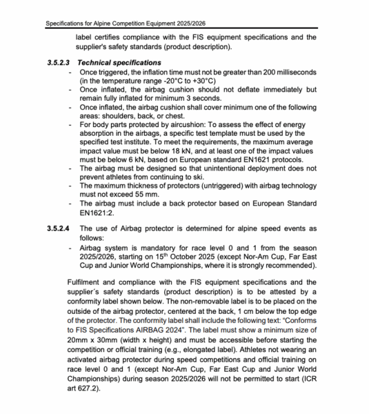 “Conforms to FIS Specifications AIRBAG 2024”
