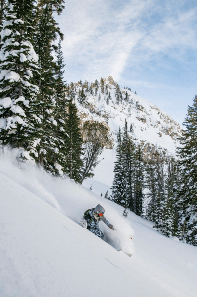 “The more I’m in the professional skiing space, the more I feel the responsibility to represent the feminine in nature as a mother,” says Dyer about the new space she is inhabiting in the ski world. “There needs to be more feminine voices in the mountains to invite people in and help folks feel safe as they are. As fun and important as big steep scary lines and airs are in showing us how much more we are capable of than we thought, there are plenty other important ways of connecting with nature that need to be honored. I’m more motivated than ever to take up space as a mother to continue to foster community and help others recognize they belong in here too.”