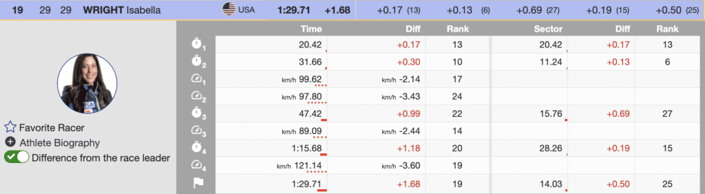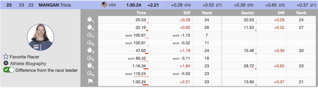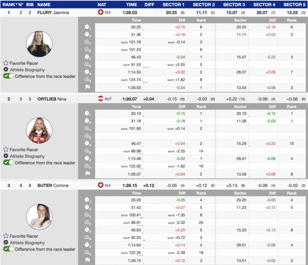Results of the women’s downhill and analysis of the fastest three and US athletes