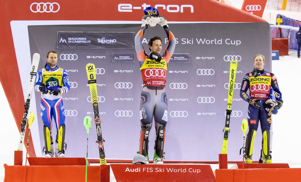 The short Canalone course features a “Muro” (wall) with a gradient of 65% midway down. That’s where Norway’s Henrik Kristoffersen, a three-time winner of this race, straddled a gate in his second leg.