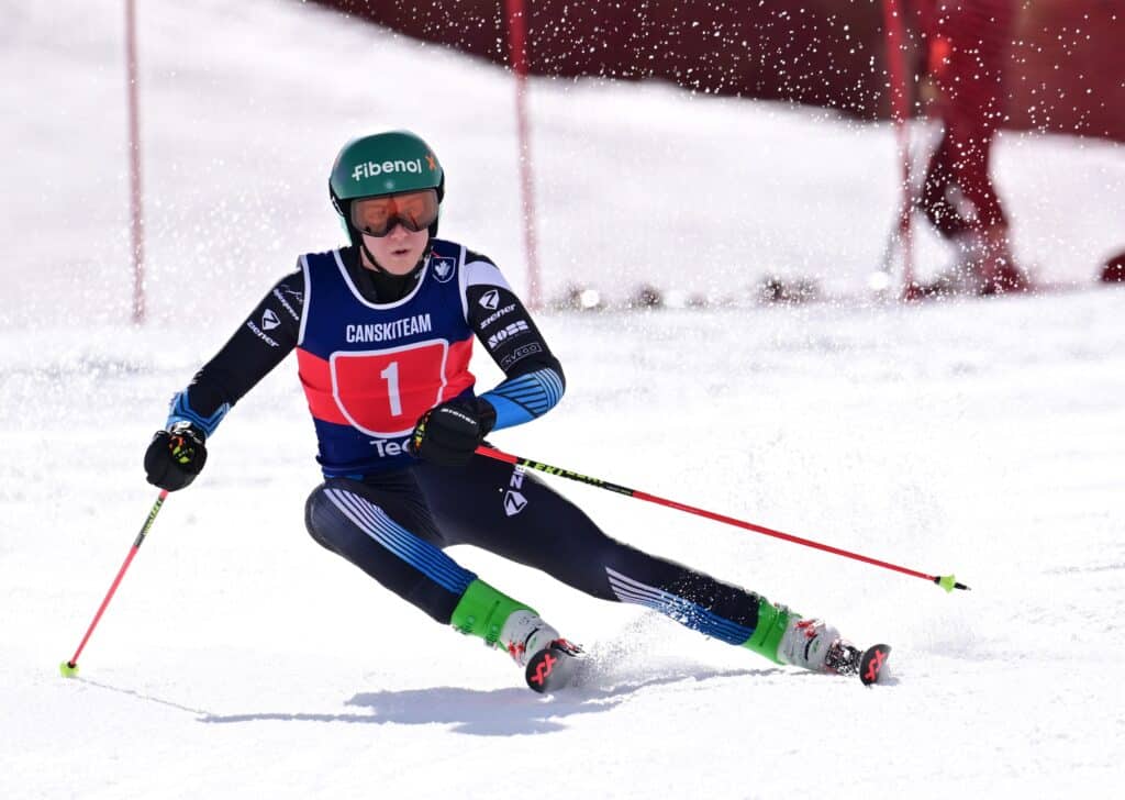 Victoria Palla of Great Britain, skiing for S1 Racing, came into the NorAm Finals with three wins and one podium in slalom this season on the circuit. She aimed to further secure her slalom NorAm title. On the first run, she came out of the start, gunning it from top to bottom.