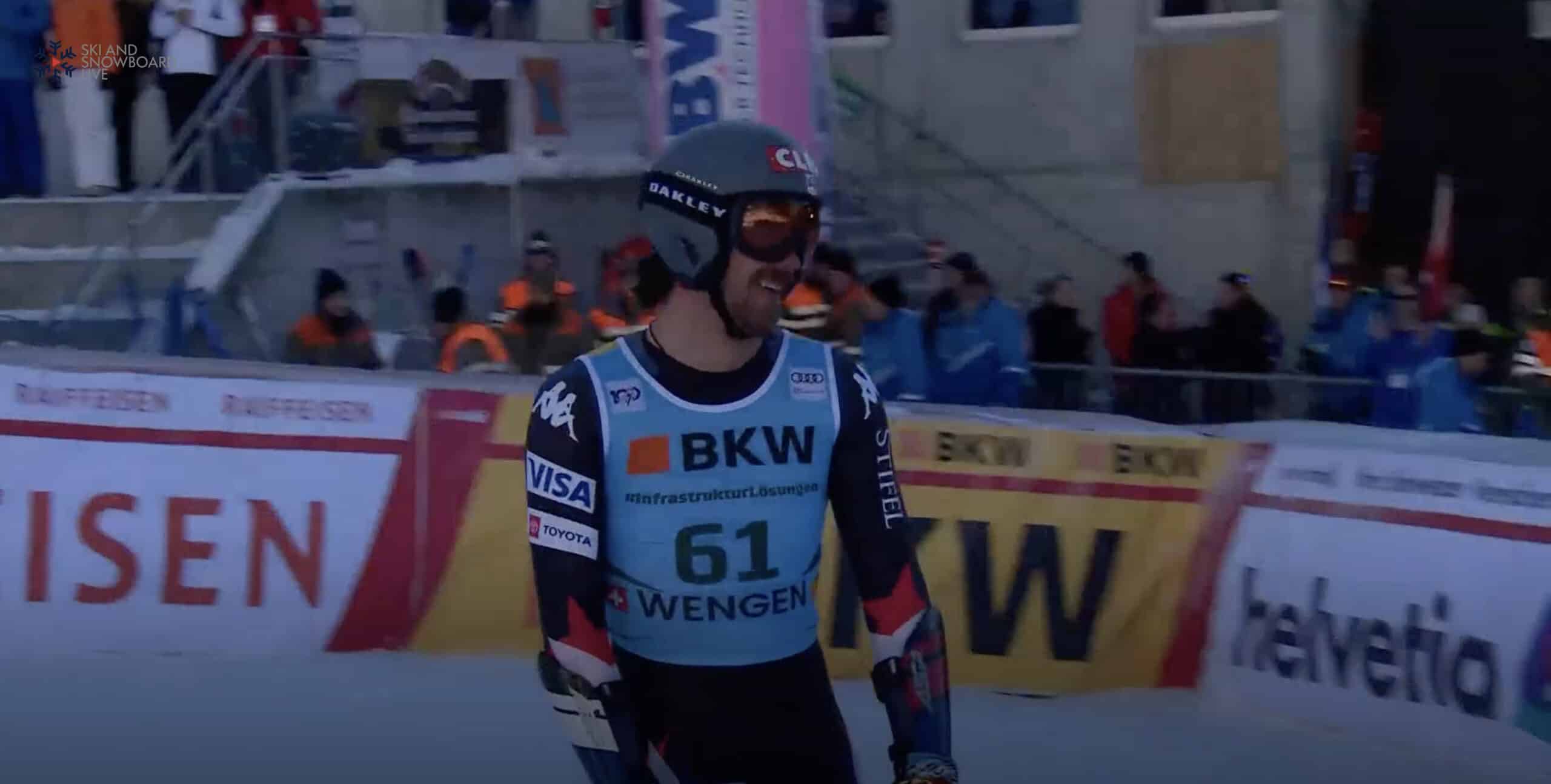 Sarrazin took tremendous risks, applied superhuman power to clean arcs and developed considerable speed. Sarrazin pushed so hard he even touched his boot to the fence, entering the iconic Lauberhorn Kernen-S. He ran with bib three, crossed the finish line with a (-3.09), and took comfort in the finish area’s leader throne. The third racer out of the start never relinquished his lead. It has become clear that Sarrazin has the skills to challenge Swiss superstar Marco Odermatt.