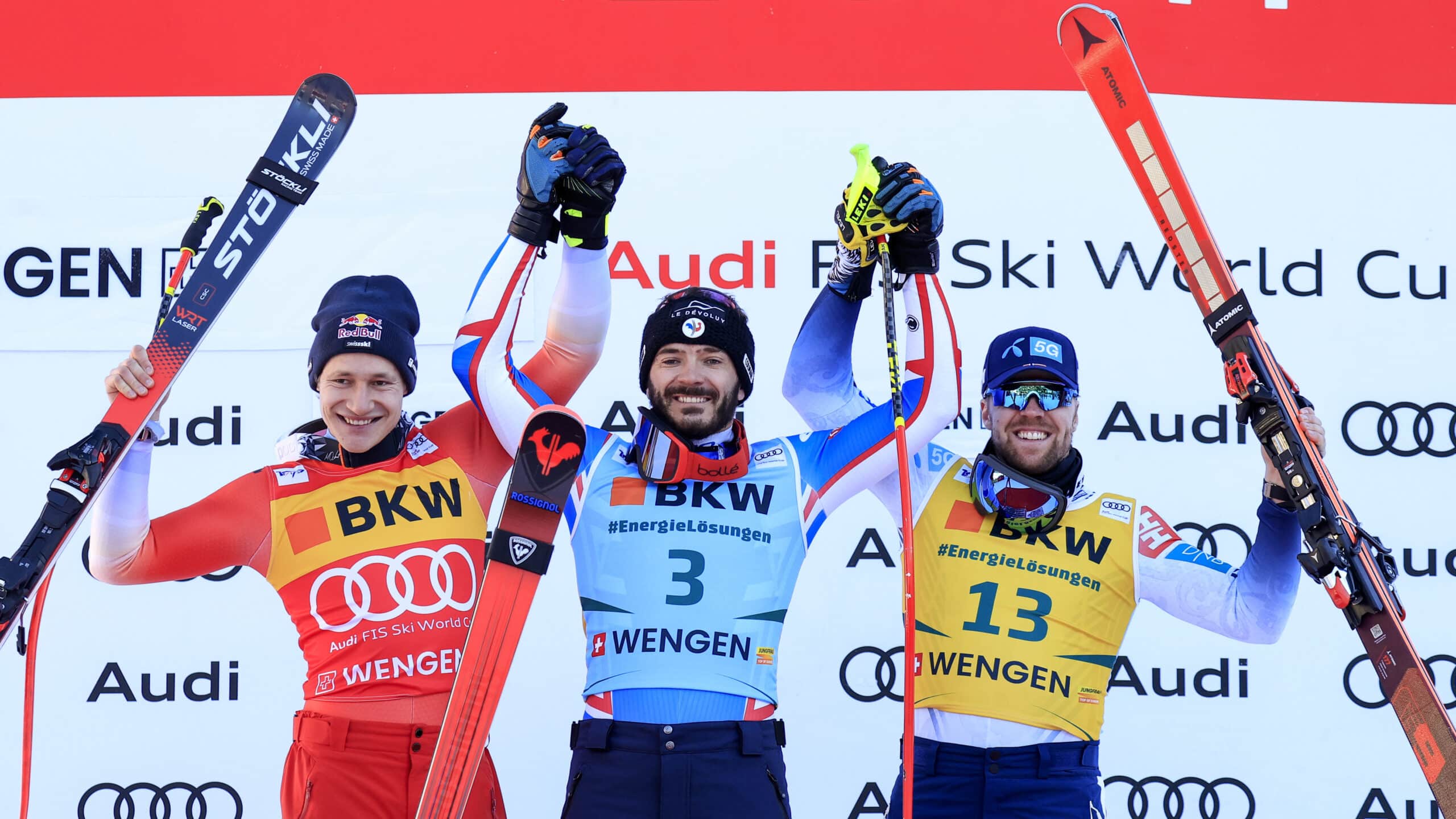 Today belongs to France’s Cyprien Sarrazin. He earned his first World Cup super-G podium, a decisive victory. He is also the first French skier in 54 years to win a World Cup speed event in Wengen.